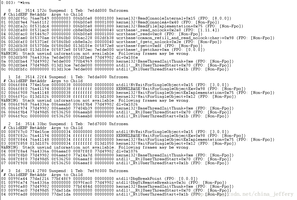 线程#2(ID:33bc)等待句柄 00000034(互斥体 MutexB ),拥有 00000038(互斥体 MutexA)