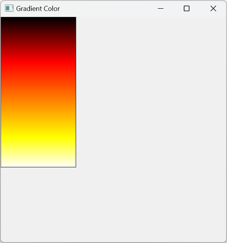 下面我们定义一个起点为(0,0)、终点为(0,400),垂直方向的线性渐变,然后使用该渐变填充位置在 (0,0),宽高为 200x400 的矩形(请注意矩形的位置和大小,这个与渐变的起止位置有关,后面会详细介绍):