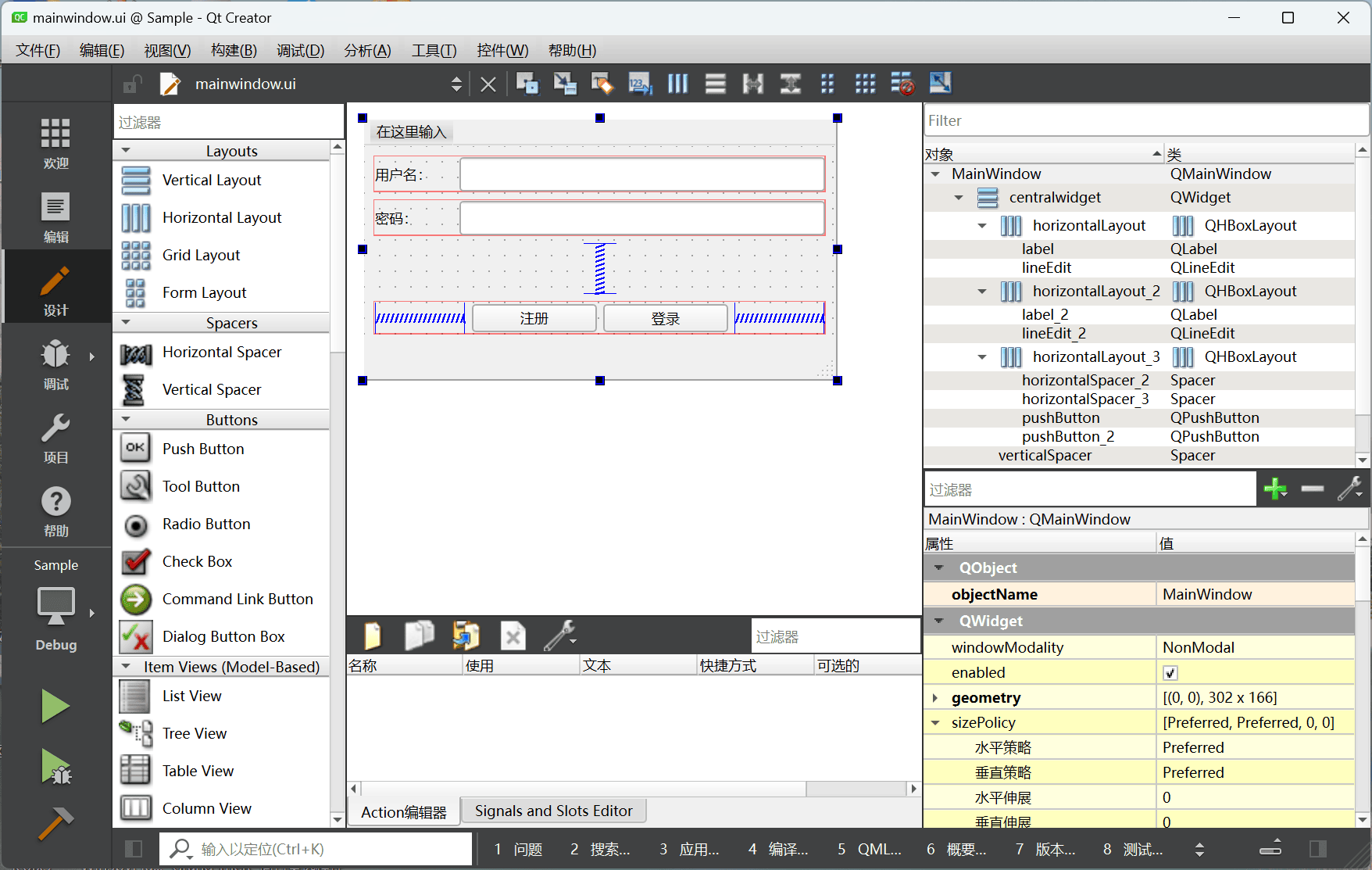 这种方式对初学者非常友好,可以快速上手开发一个界面,增加成就感。但我们需要知道,拖放布局不是 Qt 布局的全部,这种方式仅适合简单的界面布局。