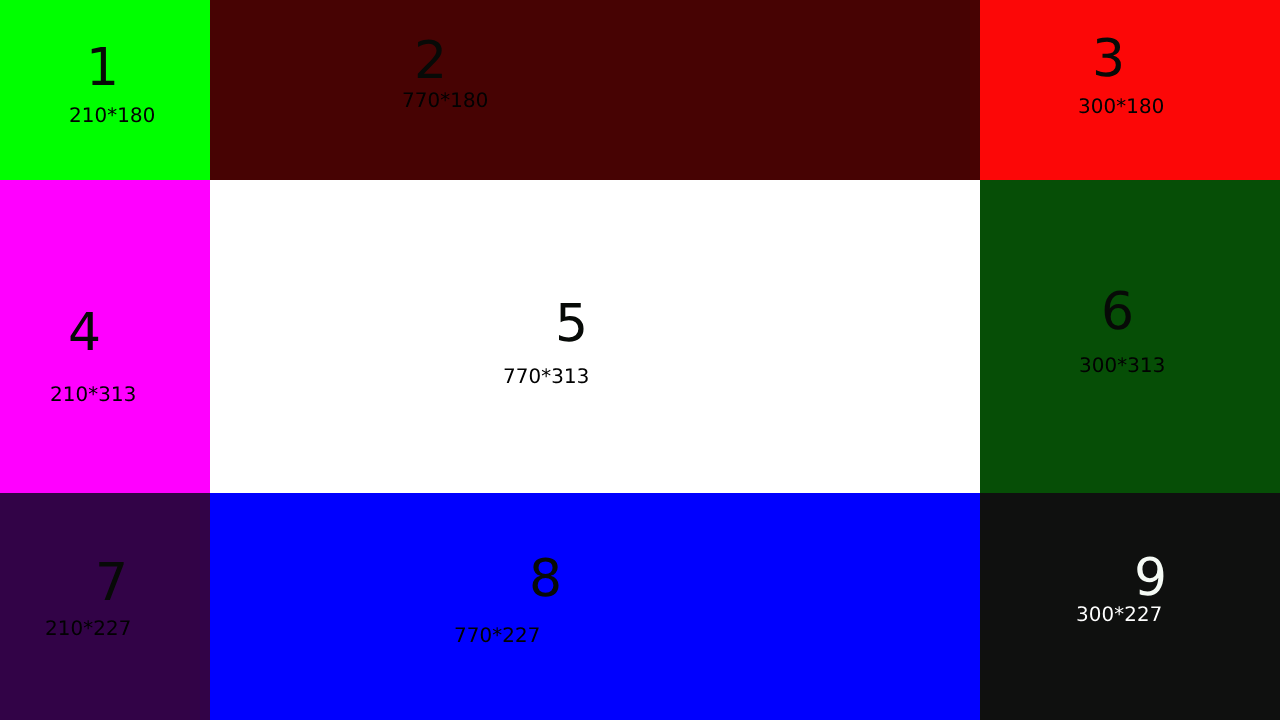 为了便于测试,我制作了一个九宫格测试图片(整个图片的宽高为1280*720):