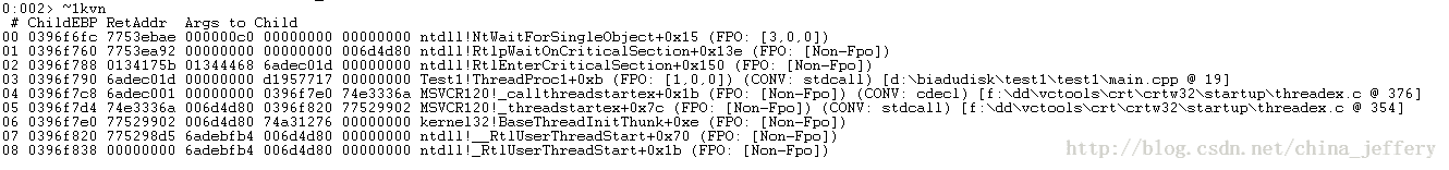 根据图 3 得知 20d0 线程就是#1 线程,~1kvn查看该线程完整堆栈: