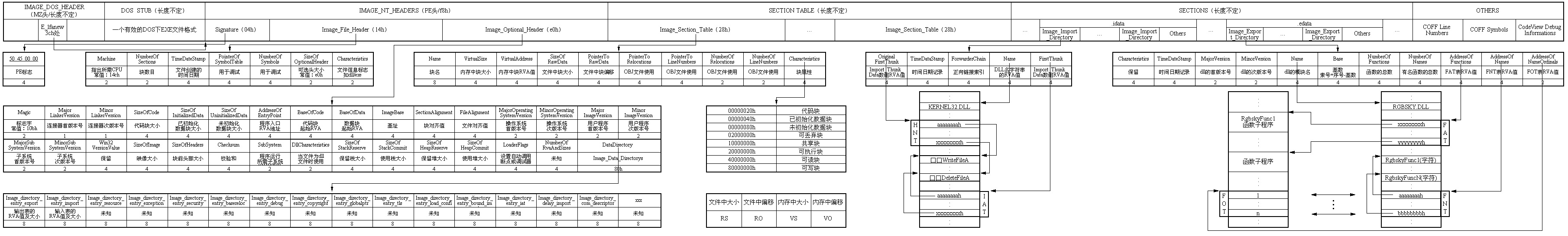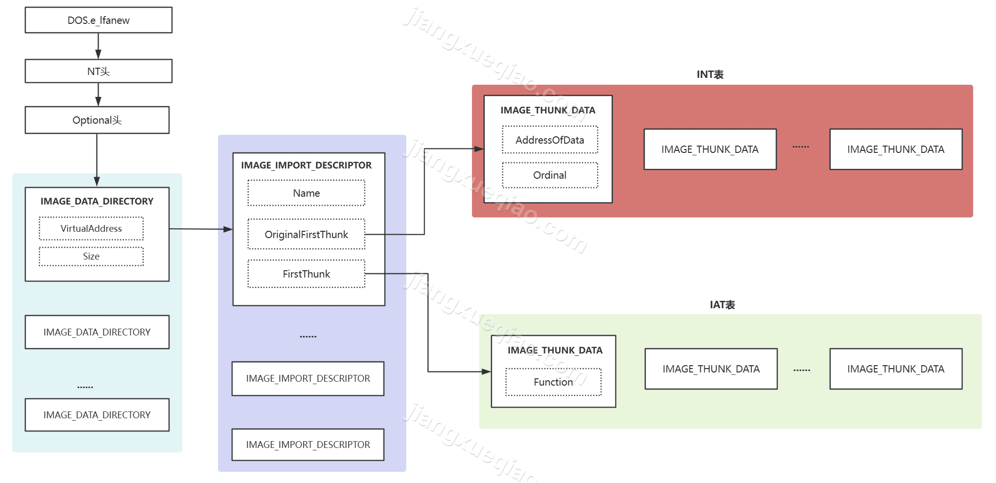 既然是 IAT Hook,那么肯定先要找 IAT 表。根据下图描述的 PE 文件结构,我们可以解析出 IAT 数据。