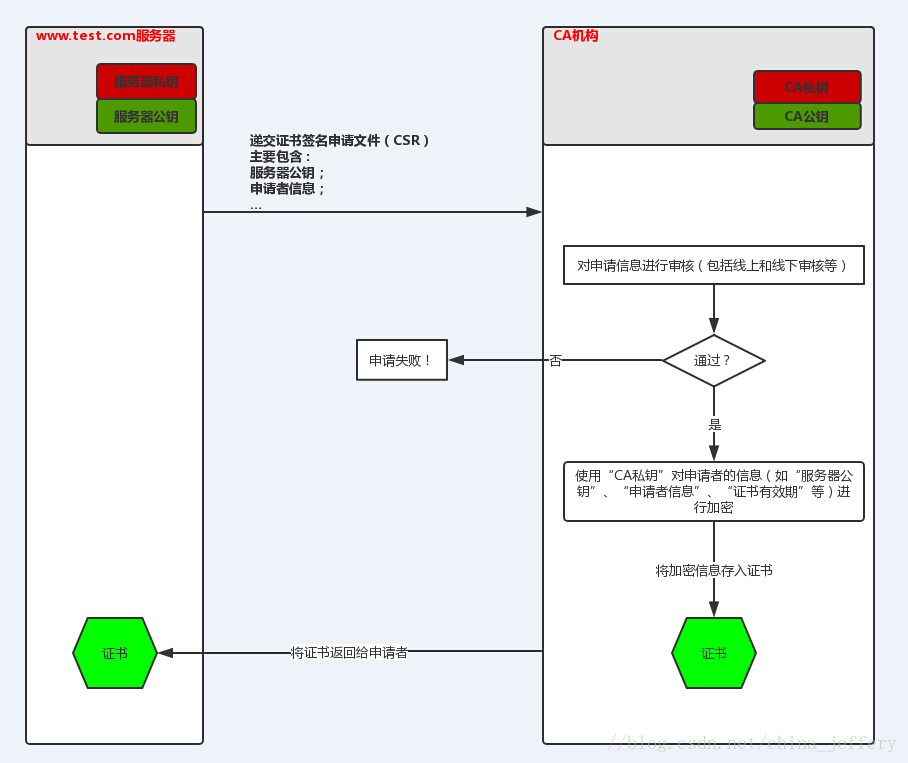 数字证书需要向“证书颁发机构”提交申请,并通过审核之后才能颁发。因为数字证书中存储的是申请者的公钥,所以如果申请者的私钥丢失或泄漏,就需要向“证书颁发机构”申请注销该证书。