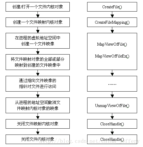 内存映射文件也是 Windows 的一种内存管理方法,提供了一个统一的内存管理特征,使应用程序可以通过内存指针对磁盘上的文件进行访问。通过文件映射将磁盘文件内容(全部或者部分)与进程虚拟地址空间的某个区域建立映射关联,可以直接对被映射的文件进行访问,而不必执行文件 I/O 操作也无需对文件内容进行缓冲处理。内存文件映射的这种特性是非常适合于用来管理大尺寸文件的。