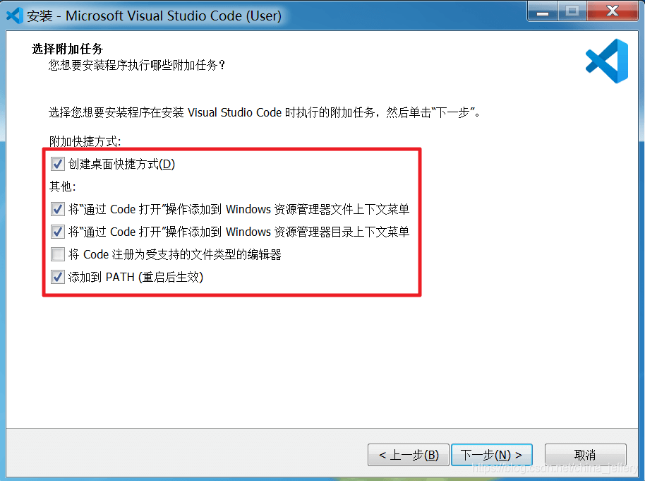 安装选项可以根据个人喜欢来指定,没有强制的要求。但建议勾选如下4项: